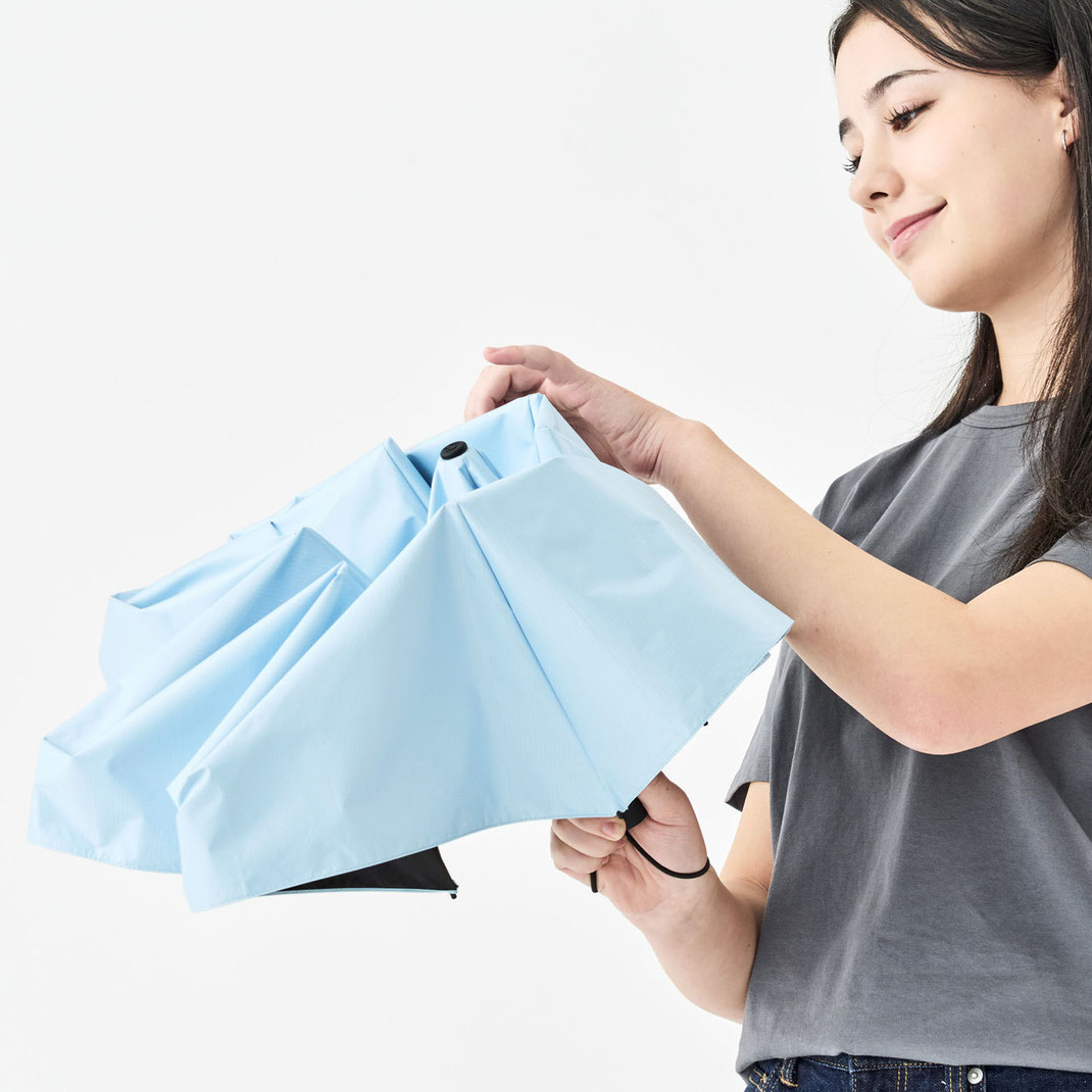 極薄・超軽量設計: 20デニールの極細糸を高密度に織り上げ、裏側に特殊な遮光PUコーティングを施すことで、生地の厚みはわずか0.06〜0.09mmを実現。これにより、傘自体の軽量化にも大きく貢献し、持ち運びの負担を軽減します。
