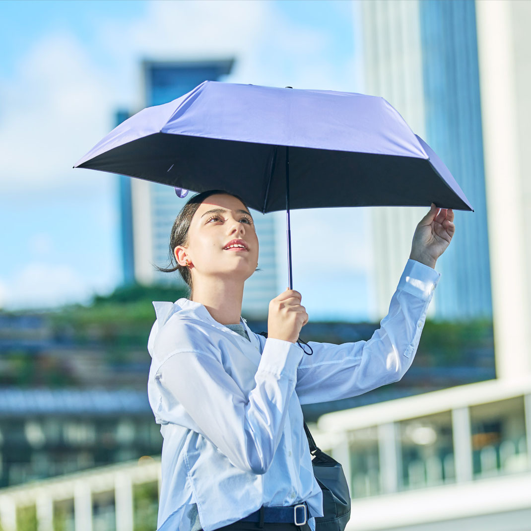 ヒートブロックは、極薄の生地でありながら、独自の特殊生地構造により高い遮熱効果を発揮します。傘をさすだけで、木陰のような涼しさを体感でき、真夏の厳しい暑さからあなたを守ります。